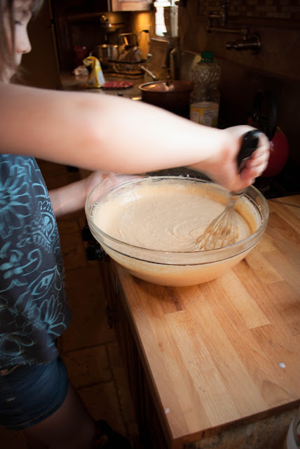 Cook on the griddle. They come out darker than regular pancakes. That is okay. They taste AMAZING!!